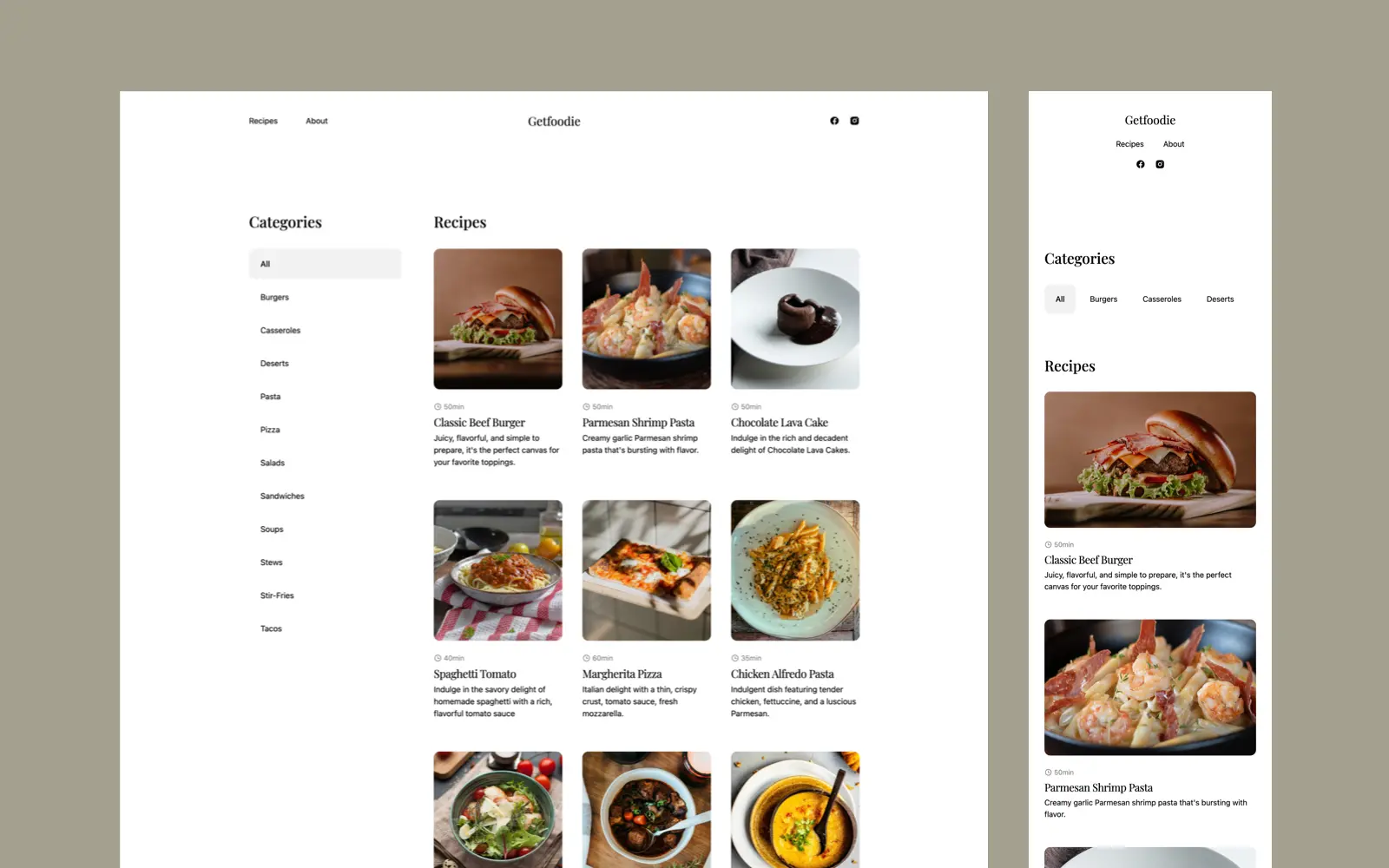 Unlock your culinary creativity with our no-code Food Recipe Website Template. Craft mouthwatering sites effortlessly, feature a diverse array of recipes across various categories, and seamlessly connect with your audience through a built-in newsletter subscription form.
